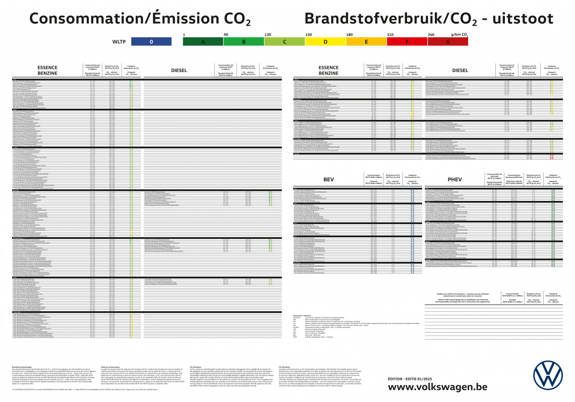 Volkswagen verbruikstabel