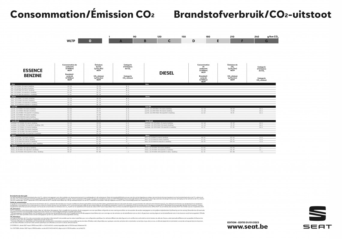 Seat verbruikstabel