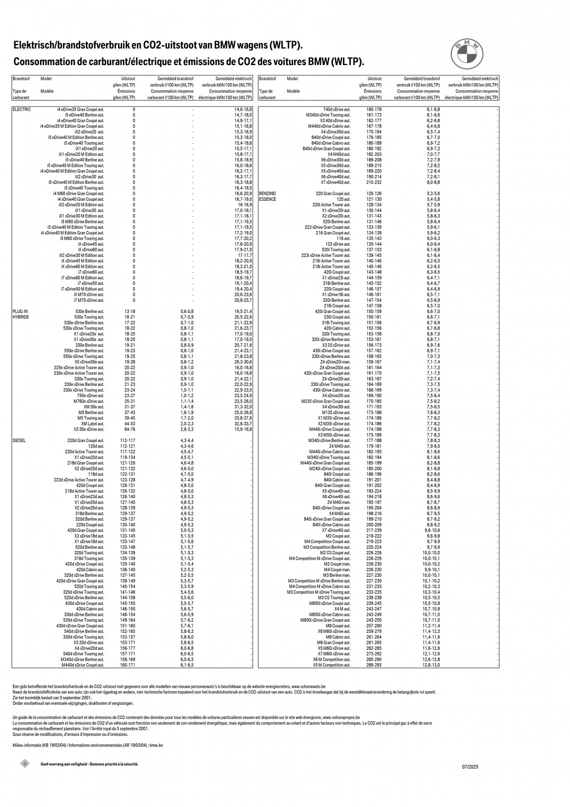 BMW verbruikstabel