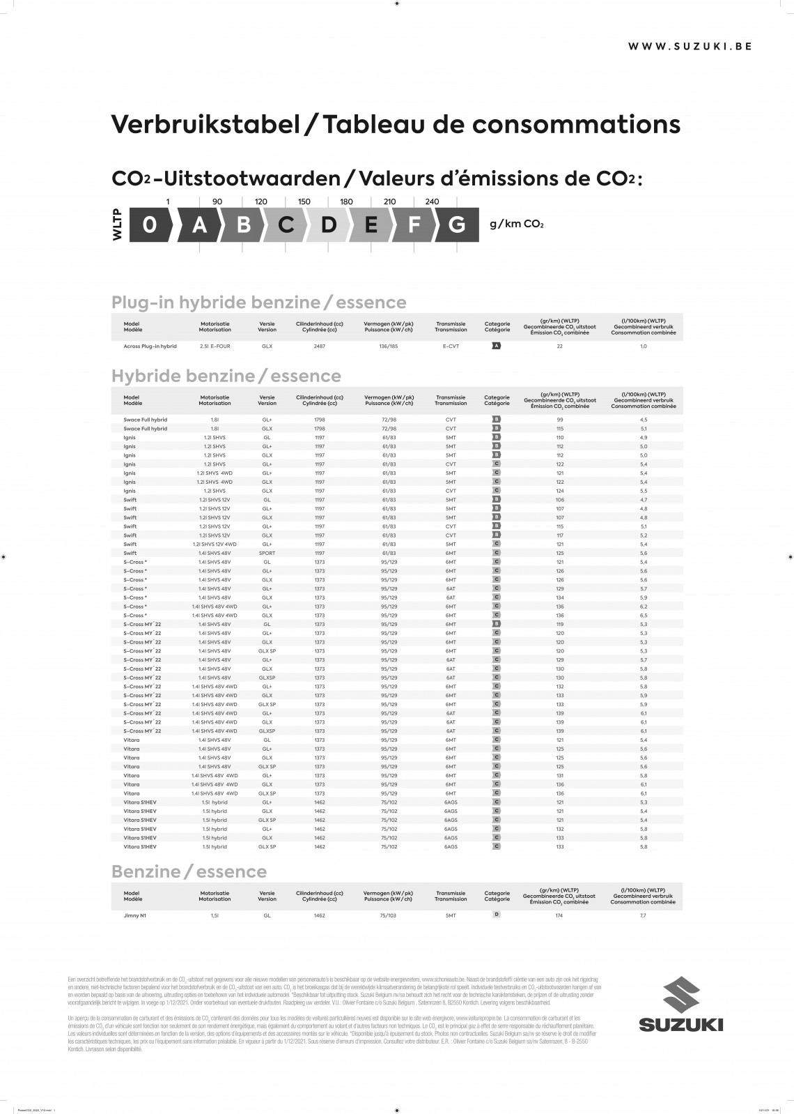 Suzuki verbruikstabel