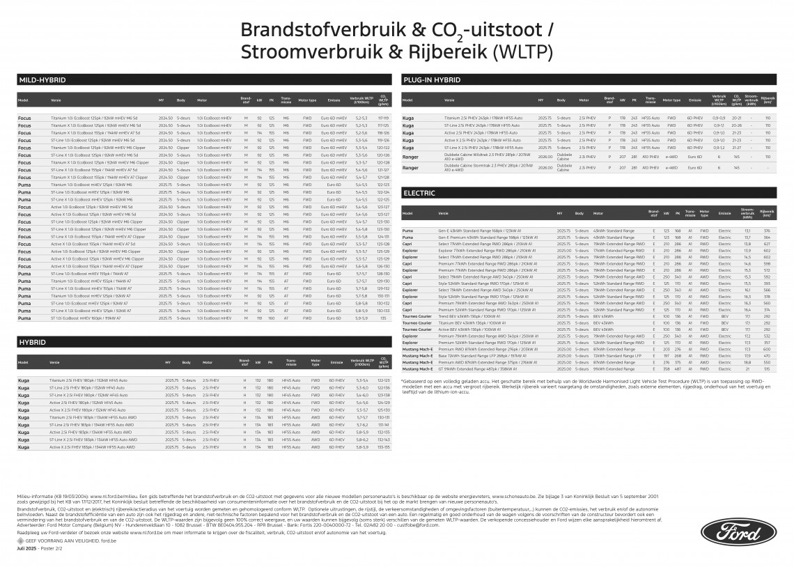 Ford verbruikstabel