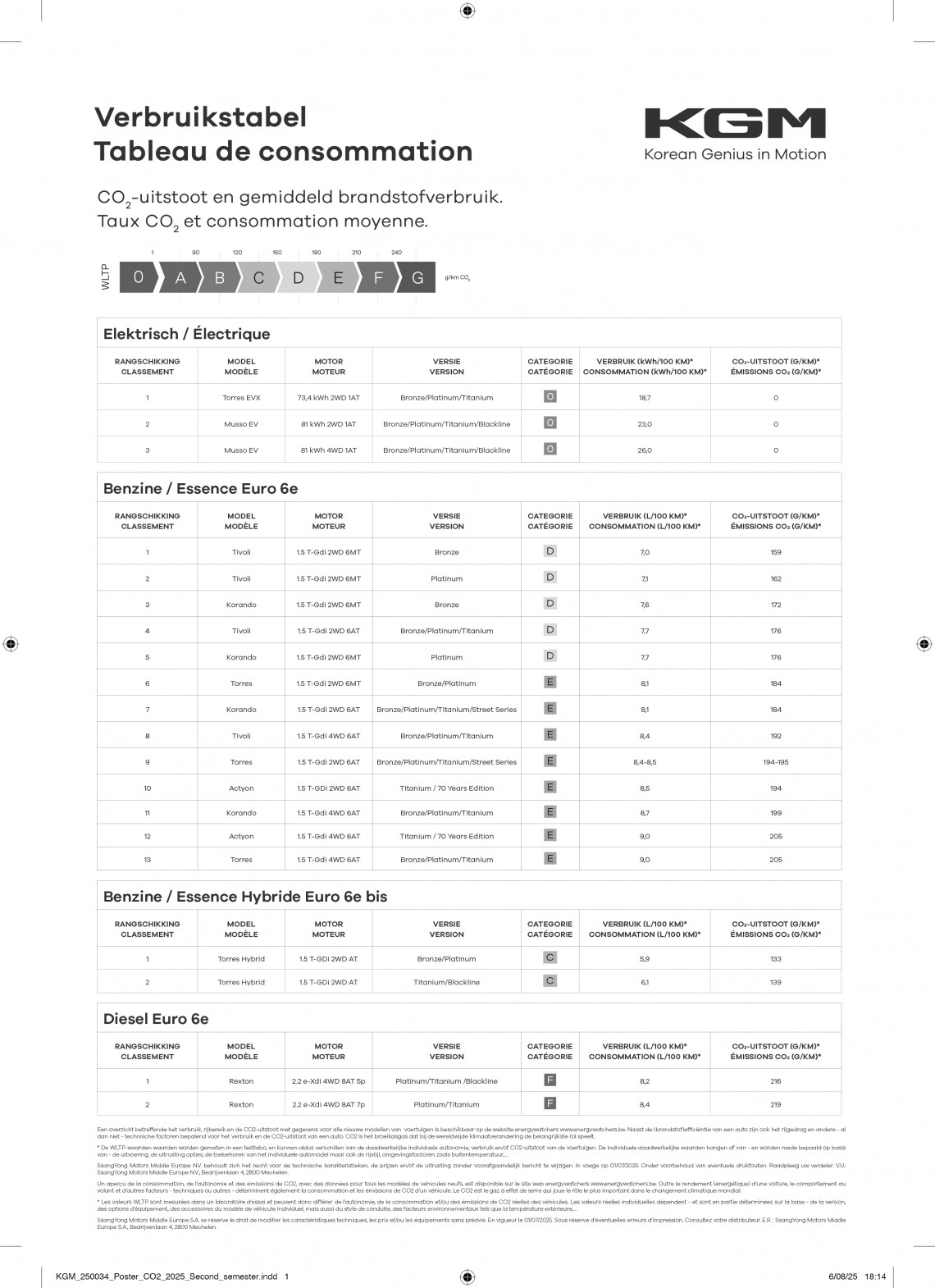 KGM verbruikstabel