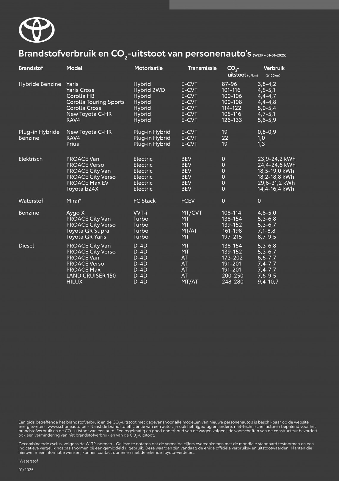 Toyota verbruikstabel