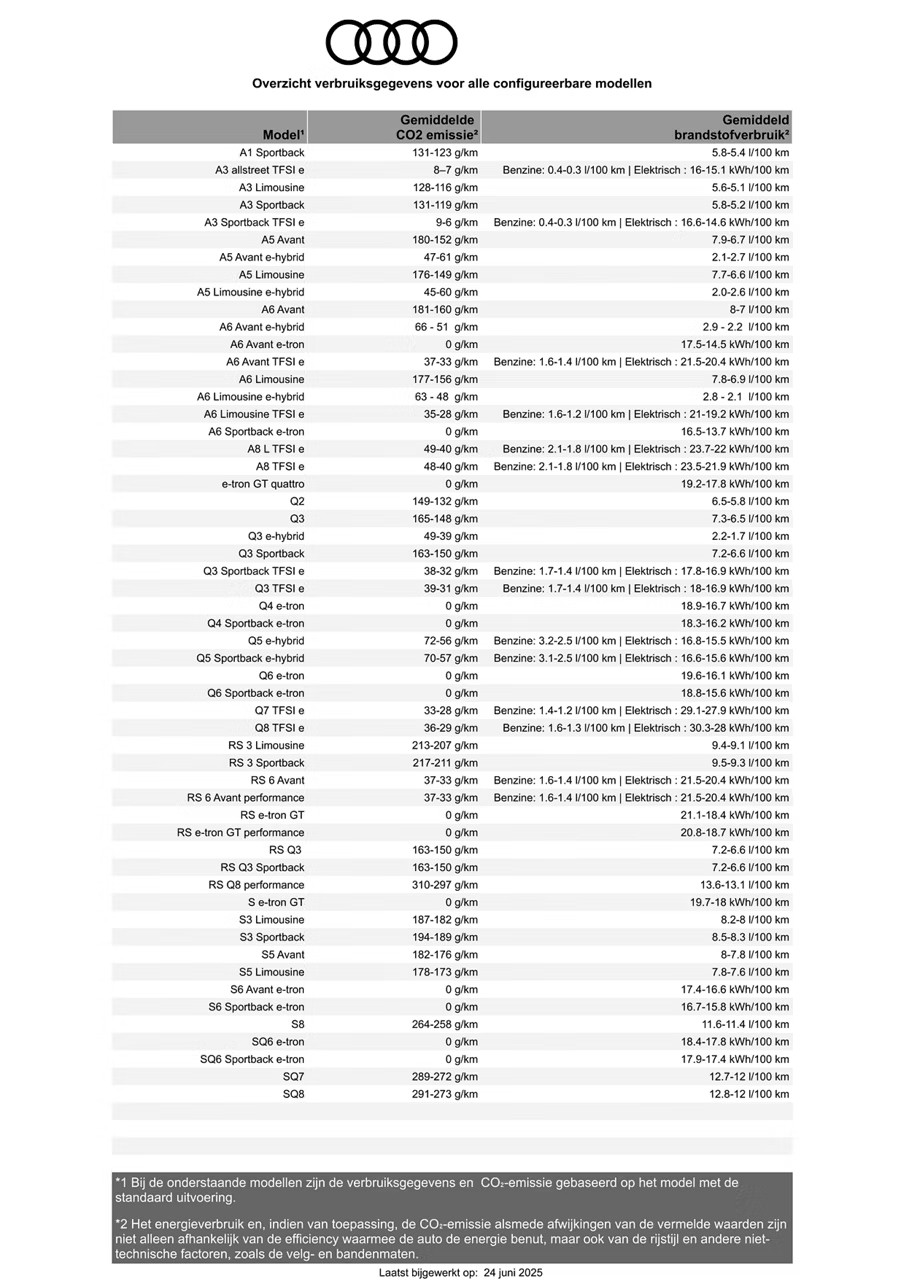 Audi verbruikstabel