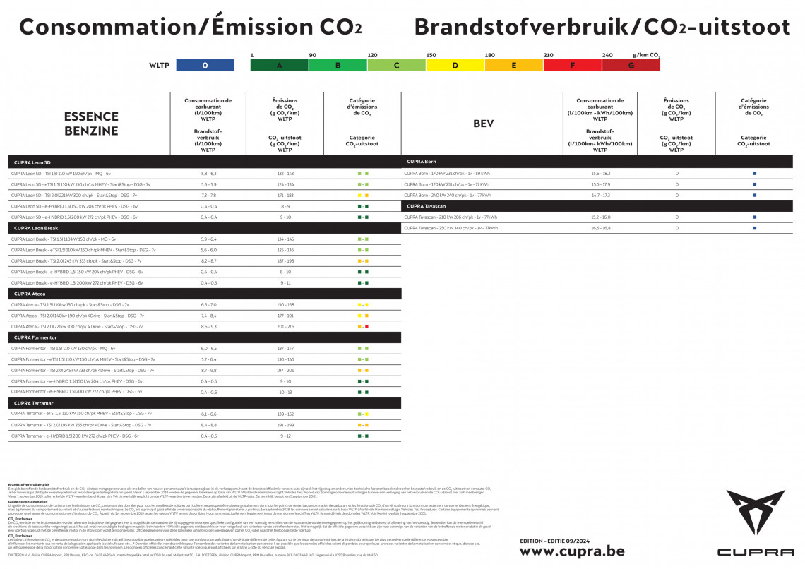 Cupra verbruikstabel