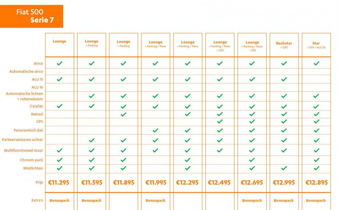 Bij Dex hebben we een uitgebreid aanbod Fiat 500 in verschillende uitvoeringen met verschillende opties. Hieronder vindt u een wegwijzer om u door het Dex-Fiatland te loodsen!